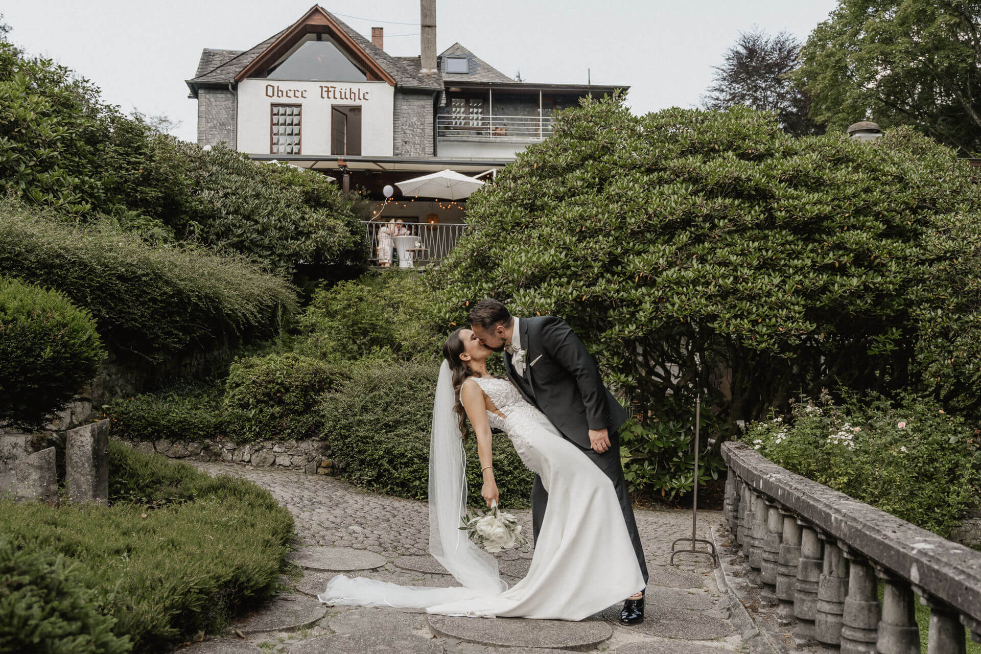 Die Obere Mühle Rengsdorf bietet zahlreiche Möglichkeiten für Hochzeitsfotos direkt vor Ort. Unterschiedliche Bereiche, Strukturen und Perspektiven sorgen für Abwechslung, ohne dass zusätzliche Wege oder Ortswechsel nötig sind.
